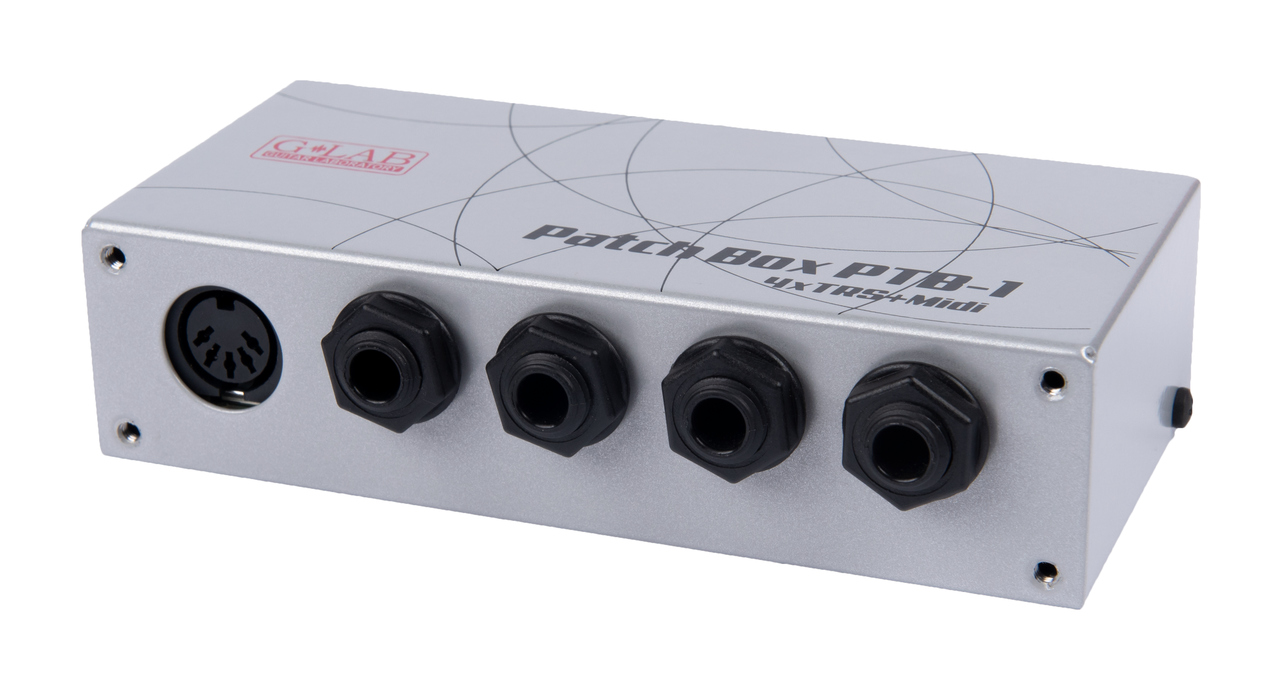 G LAB Patch Box consists of No. 4 passive TRS Jack type 6,3mm inputs, No. 4 TRS Jack type 6,3mm outputs plus additionally MIDI IN and OUT. It has mounting holes that matching to all G LAB pedalboards. The isolated TRS stereo joint could be used both to connect control cables of the amp and also with mono signals to make easy connection with input and output/ fx loop send and fx return from the pedalboard.